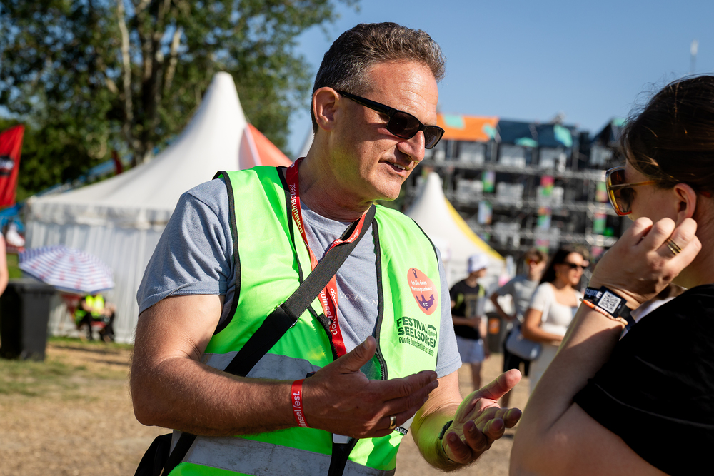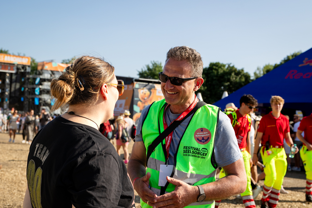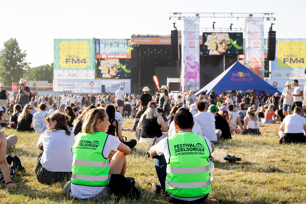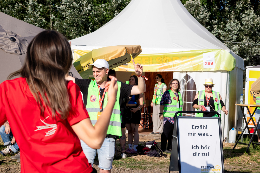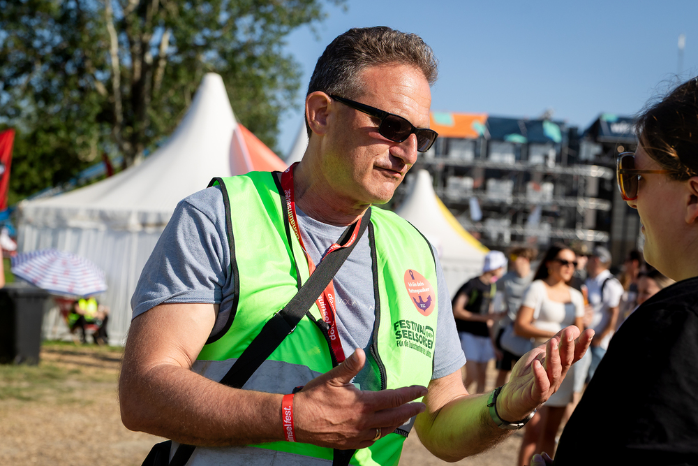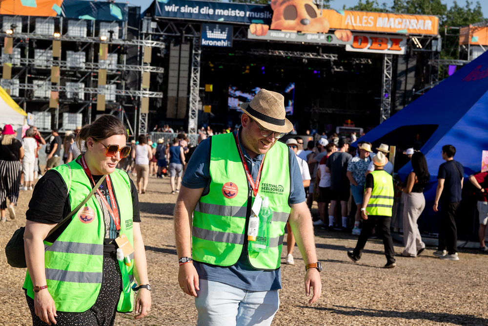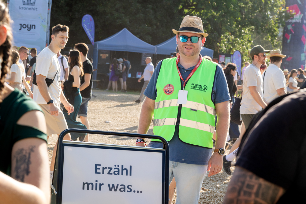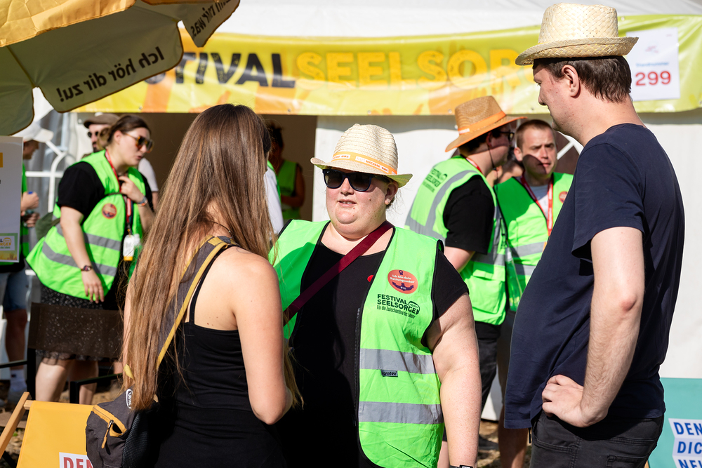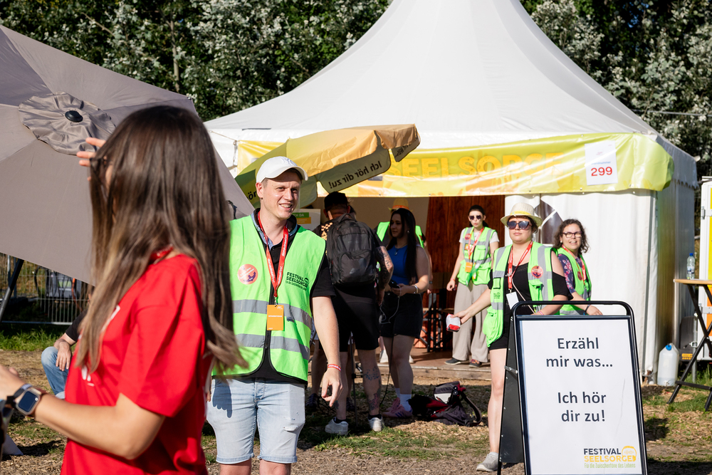 Das ökumenische Team der Festivalseelsorge, bestehend aus 40 speziell geschulten Seelsorgerinnen und Seelsorgern der Römisch-katholischen und Evangelischen Kirche, ist beim diesjährigen Donauinselfest unter dem Motto "Erzähl mir was, ich hör dir zu" im Einsatz. Die Seelsorger, erkennbar an grünen Warnwesten, bieten an einem festen Standort sowie mobil auf dem gesamten Festivalgelände kostenlose Unterstützung für alle Festivalgäste an, unabhängig von deren Religion oder Weltanschauung.Wir waren mit der Kamera dabei.