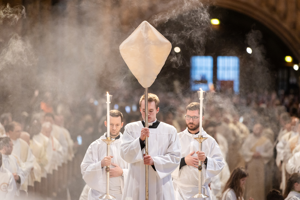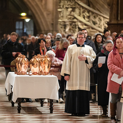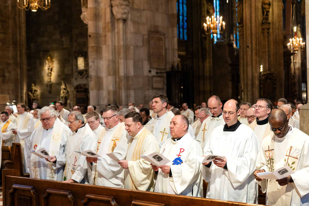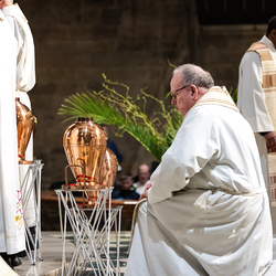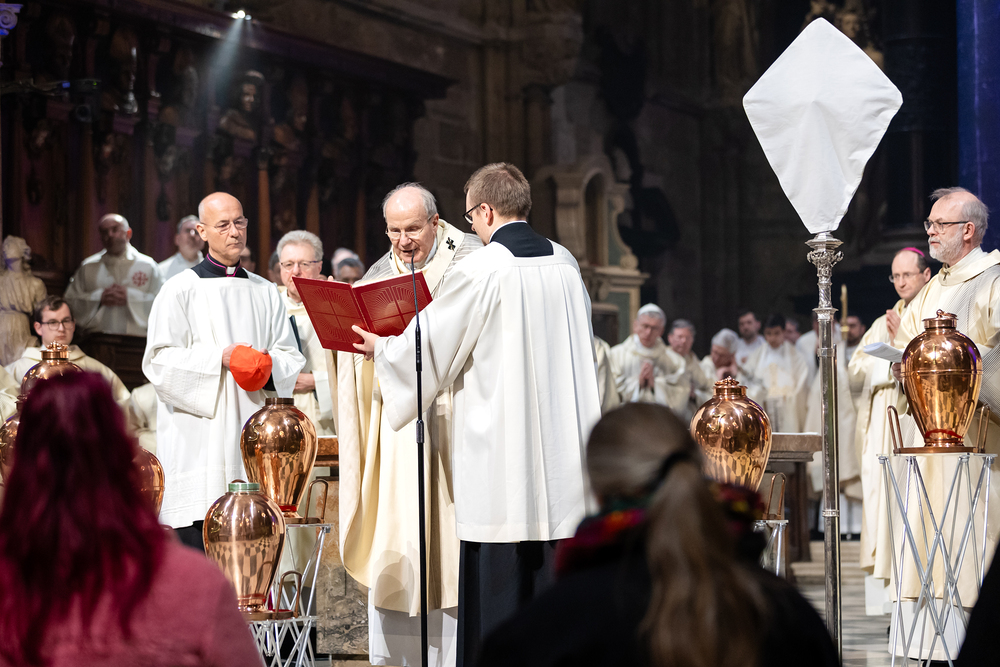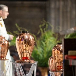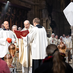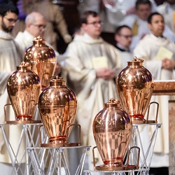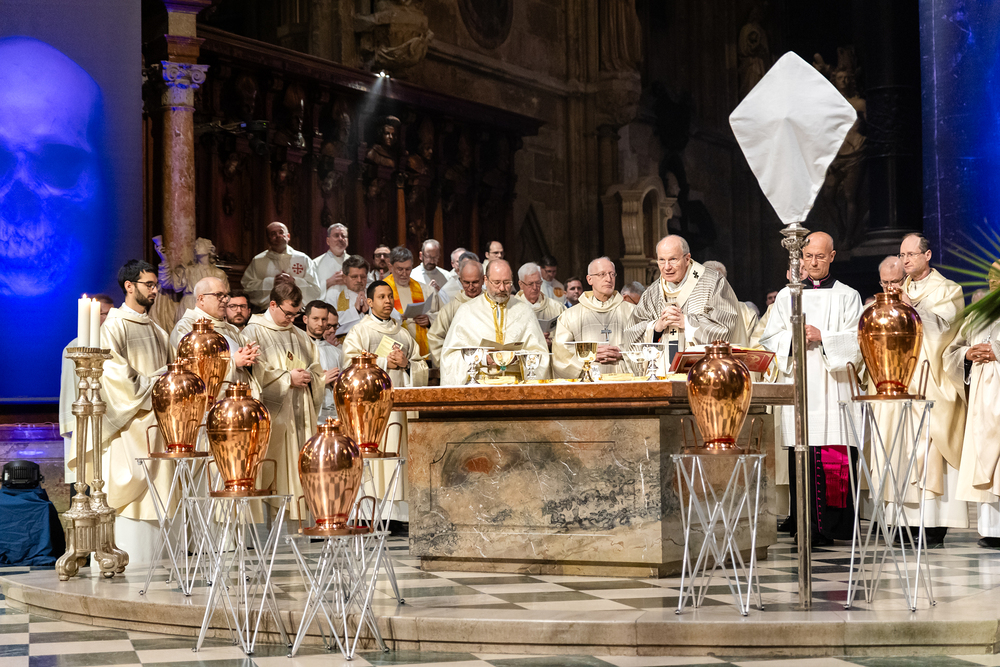 Die Weihe der Heiligen Öle in der Chrisammesse versammelt zu Beginn der Karwoche Priester, Diakone und Gläubige der Diözesen im Stephansdom. Die Priester und Diakone erneuern dabei ihr Versprechen für den Dienst in der Kirche, während die anwesenden Gläubigen die Weihe der Heiligen Öle mitfeiern. Diese Öle werden während des Jahres in den Pfarreien bei Taufen, Firmungen und Krankensalbungen verwendet.